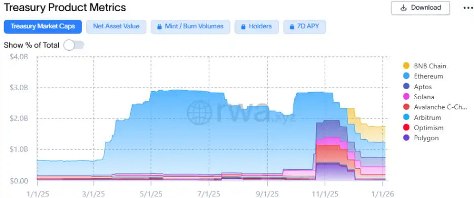 Tokenized U.S. Treasuries are becoming a conveyor belt connecting traditional risk-free yields and on-chain strategies. BlackRock's BUIDL fund achieved textbook-like expansion in 2025, growing rapidly from $650 million to $1.75 billion, further consolidating its position as a leader among tokenized U.S. Treasury products. BlackRock brought not only capital but also brand endorsement, allowing BUIDL tokens to serve as underlying collateral in protocols like Aave and Euler, and through cross-chain distribution, connect U.S. Treasury yields to the DeFi market.