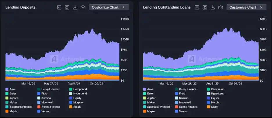 In terms of on-chain lending scale, deposit size increased from $64.1 billion to $90.9 billion, a year-on-year growth of about 42%; outstanding loan size rose from $26.6 billion to $37.6 billion, a year-on-year growth of about 41%.