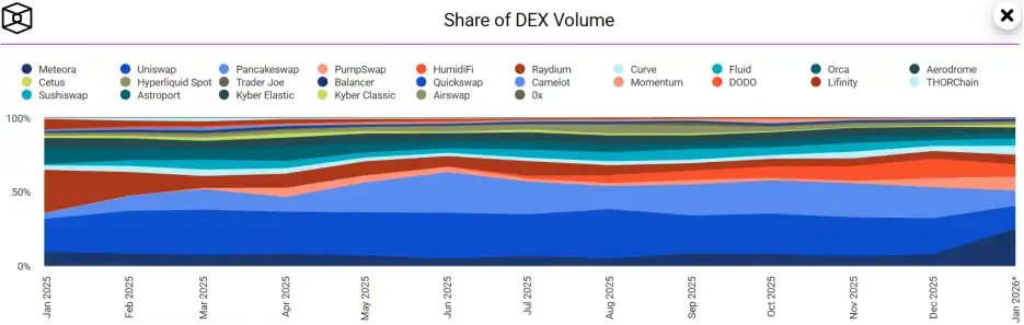 Although Uniswap remains the sector leader, the technical route of DEXes has seen a structural change衍生 (derivative) from traditional AMM (Automated Market Maker) to Prop AMM (Proprietary Automated Market Maker).