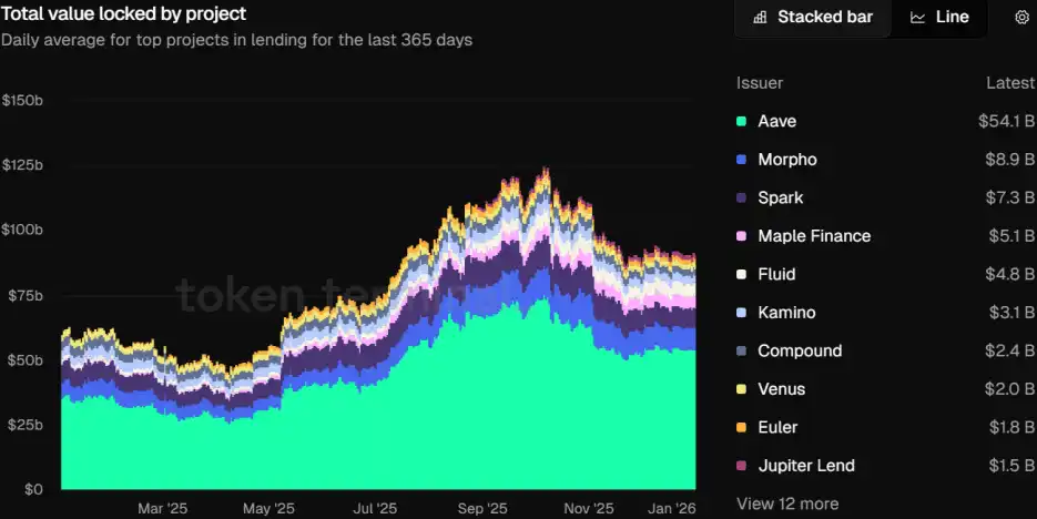Lending is the cornerstone of DeFi. The sector's TVL hit a historic high of $125 billion, stabilizing at $91.6 billion by year-end.