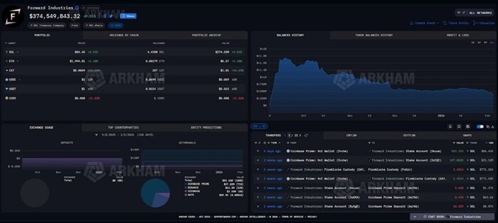 In 2025, Solana treasury companies came into focus. Due to highly publicized holdings, the largest SOL holder among them is the Solana treasury company Forward Industries (shown below), which currently holds 6.9 million SOL tokens (worth $583 million), representing 1.115% of the total SOL supply. Other Solana treasury companies lag far behind; the nine companies following Forward Industries collectively hold only about 1.5% of the total SOL supply.