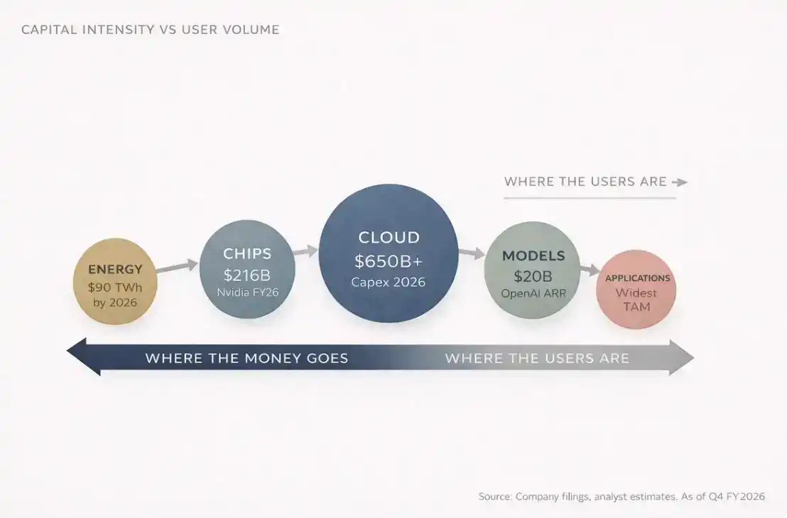 This is the first rule of the AI value chain: Revenue flows up, capital settles down.