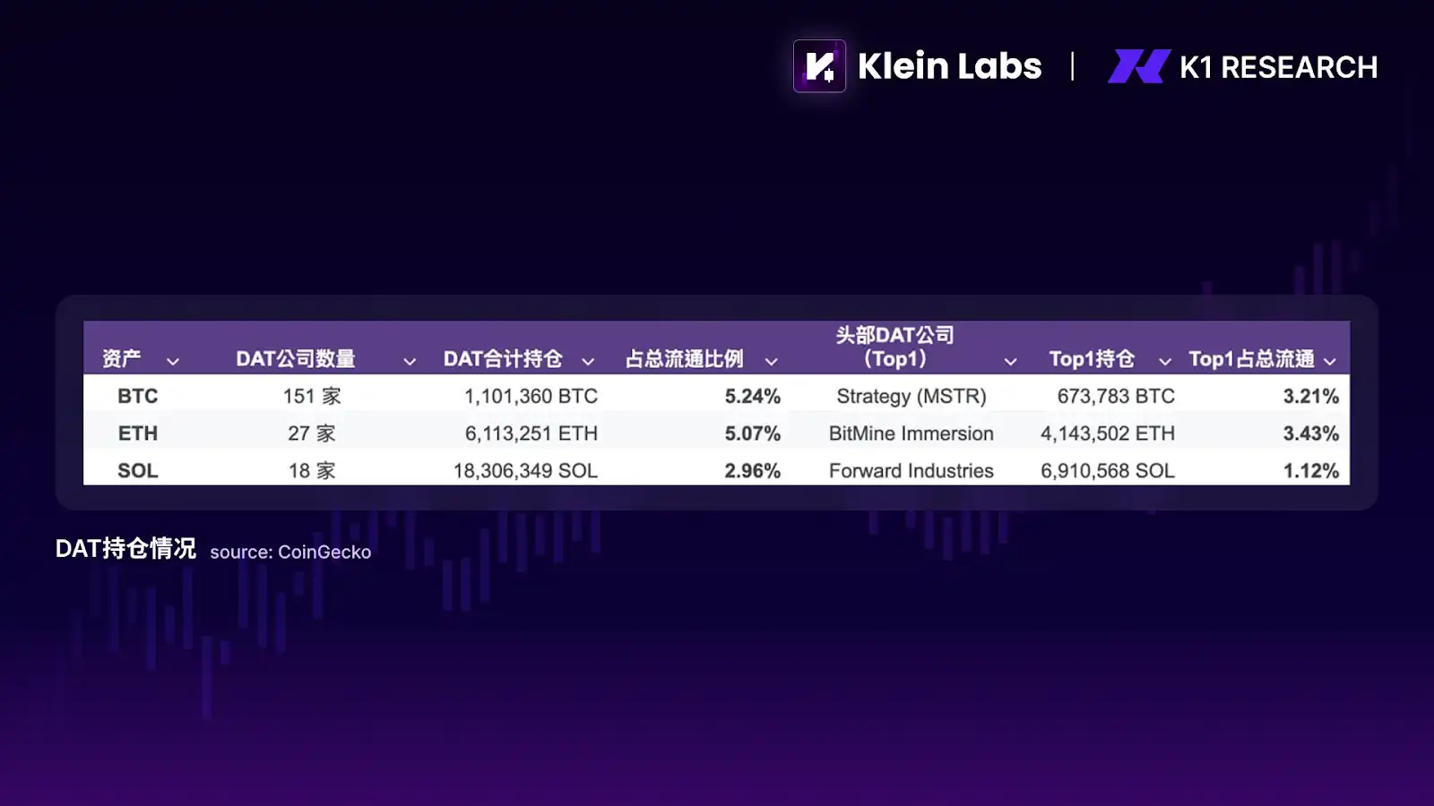 Equally noteworthy as ETFs is the rapidly emerging phenomenon of "coin-stock companies" DAT (Digital Asset Treasury Companies) in 2025: listed companies incorporate digital assets like BTC, ETH, and even SOL into their balance sheets and use capital market tools such as secondary offerings, convertible bond issuances, buybacks, and staking rewards to shape their stocks into "leveragable crypto exposure vehicles that can be financed." In terms of scale, nearly 200 companies have disclosed adopting类似 DAT (similar DAT) strategies, collectively holding over $130 billion in digital assets. DAT has evolved from individual cases into a class of trackable capital market structure. The structural significance of DAT lies in: like ETFs, it strengthens the capital absorption of mainstream assets, but its transmission mechanism is more "equitized"—capital enters the stock valuation and financing cycle, rather than directly entering the secondary liquidity of long-tail tokens, thereby further exacerbating the capital stratification between mainstream and alt assets.