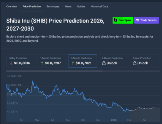 In the shorter term, the CoinCodex algorithm has also predicted a possible increase in the Shiba Inu price. The 1-3 month predictions show a tendency for a reversal, although the scale of this reversal seems to be severely limited in how high it could go.