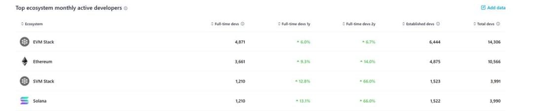 Looking back, other public chains like Polkadot and Cosmos have all experienced phases of rapid developer growth, but they never managed to pose a challenge to Ethereum of the same magnitude in terms of market share and sustained recruitment scale.