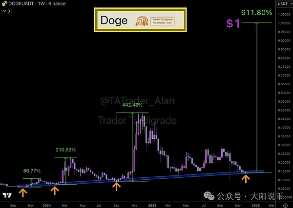 The trader also observed that DOGE's daily MACD has formed a bullish crossover, indicating a potential trend reversal from decline to rise. Similar signals led to new阶段性 highs in Q2 and Q3 of this year.