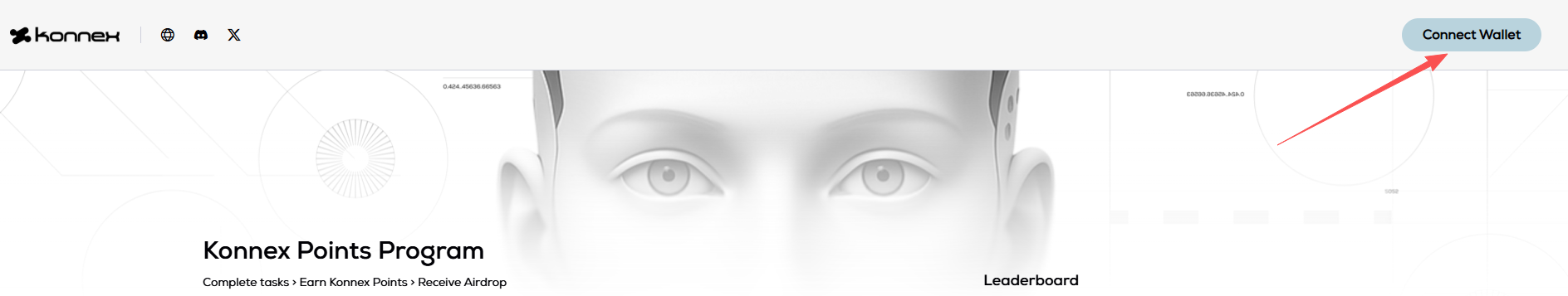 STEP 1. Visit the website (link: https://hub.konnex.world/points), click "Connect Wallet" to log into your personal account.