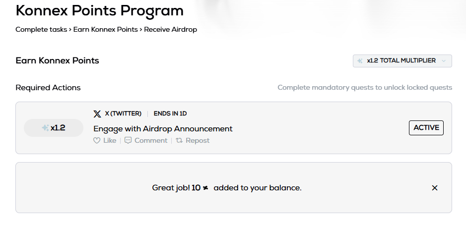 On January 20th, Konnex announced on X platform the launch of its points platform.