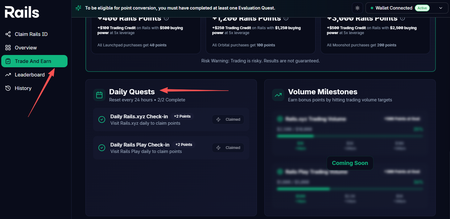 STEP 2. After claiming your Rails ID, complete the social tasks on the platform.
