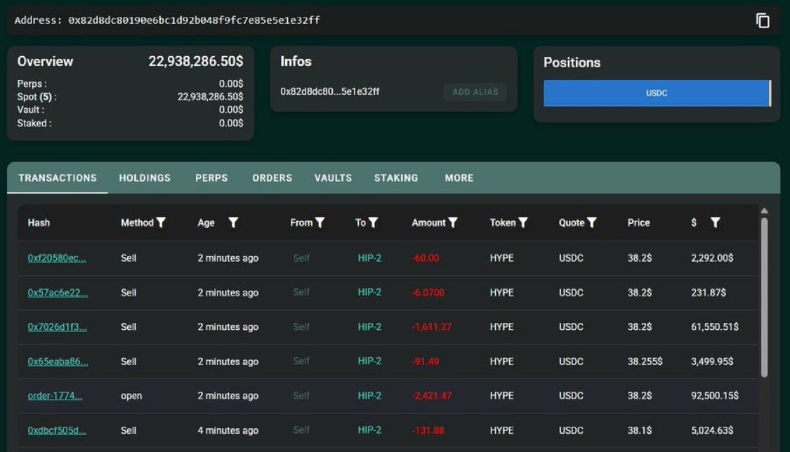 The most notable transaction came from a prominent whale wallet, High Stakes Capital, which fully liquidated its HYPE holdings.