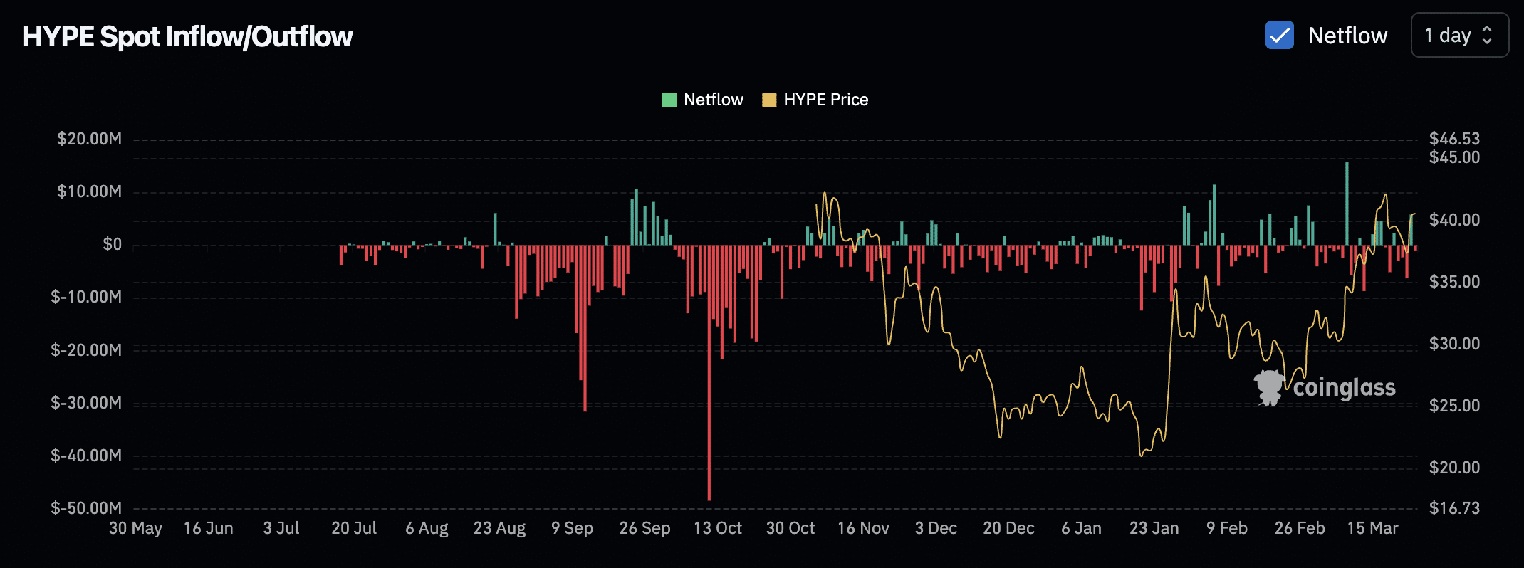 Hyperliquid recorded heavy capital outflows over the past 24 hours. Despite this, price action moved in the opposite direction, with HYPE rallying roughly 8% to trade above the $40 level.