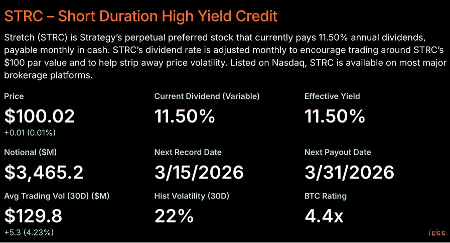 Strategy's STRC offers an 11.5% annualized dividend, payable monthly in cash, tradable on most major brokerage platforms. Strategy's foundation lies in Bitcoin's CAGR. Its assumption is that BTC is an anti-inflation asset and believes the real inflation rate is about 8%. STRF and other similar preferred share products like STRD and STRK bring the anti-inflation portion of the yield to investors. Investors can also choose STRK with an 8% yield, with the opportunity to convert to MSTR to capture more Bitcoin upside.