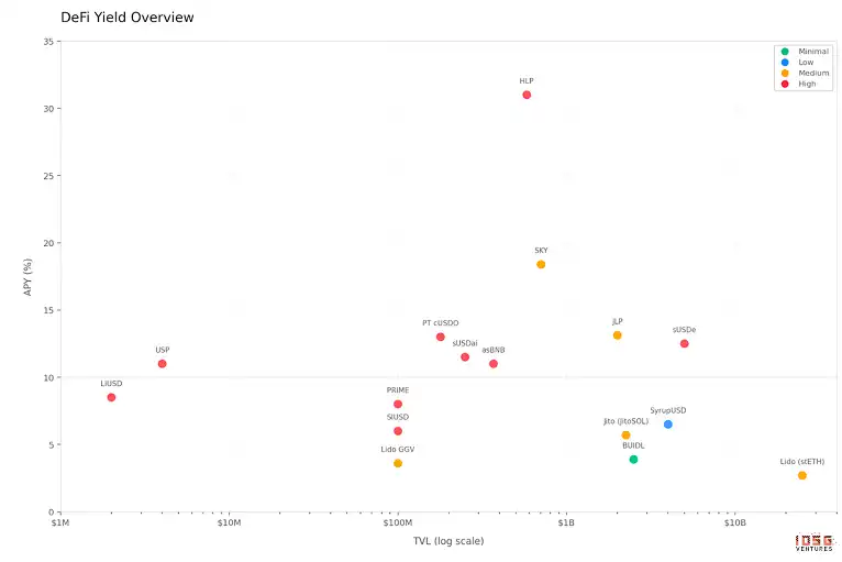 This also illustrates that when evaluating on-chain yield opportunities, looking only at APY does not fully reflect potential returns. The underlying asset plays a key role in determining actual performance, especially for products like JLP (an index fund composed of SOL, BTC, ETH), asBNB, and SKY. In these cases, token price volatility often outweighs the APY itself, making asset selection as important as yield. However, some investors can mitigate this risk through hedging strategies, such as shorting an equivalent amount of the underlying asset on CEX or DEX, thereby isolating the underlying asset price volatility and capturing only the yield-bearing income.