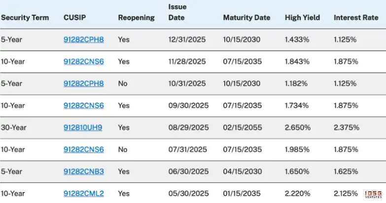 Traditional finance has similar anti-inflation products, such as TIPS (Treasury Inflation-Protected Securities) issued by the government. TIPS rise with inflation and fall with deflation. They use the CPI (Consumer Price Index)统计 by the U.S. Bureau of Labor Statistics to adjust TIPS. Although the TIPS interest rate is lower than the inflation rate (2.7%), this is the real yield after deducting inflation because the principal is adjusted according to the inflation rate, and the real yield is about 4%.