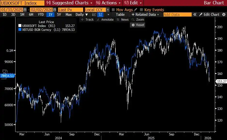 UBS SaaS Index vs. Bitcoin Trend