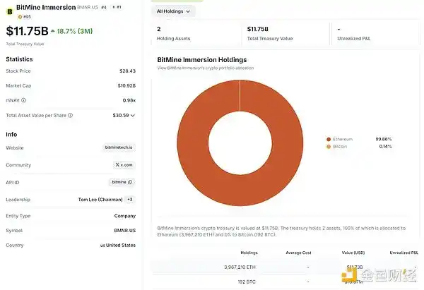 Actualmente, BitMine posee 3,967,210 ETH, valorados en 11.73 mil millones de dólares.