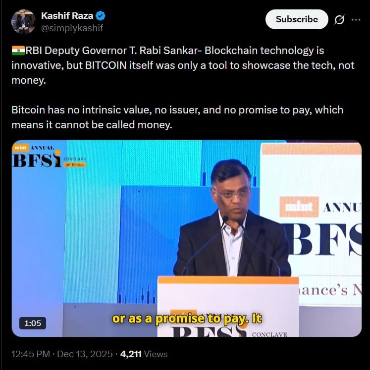 印度储备银行(RBI)一位高级官员最近的言论,引发了全国范围内关于比特币[BTC]本质的讨论……以及它不是什么。