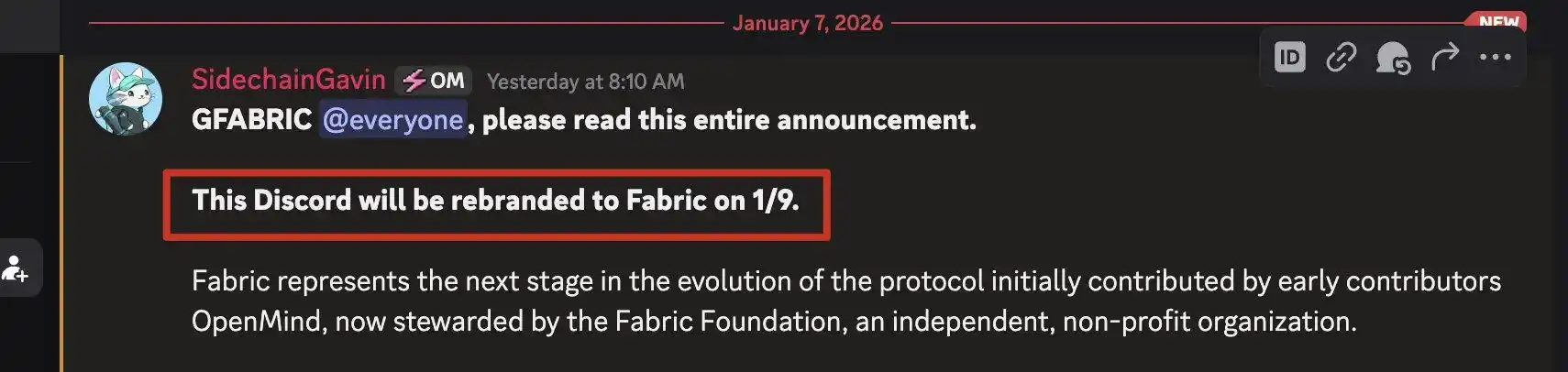 OpenMind's official Discord renamed to Fabric