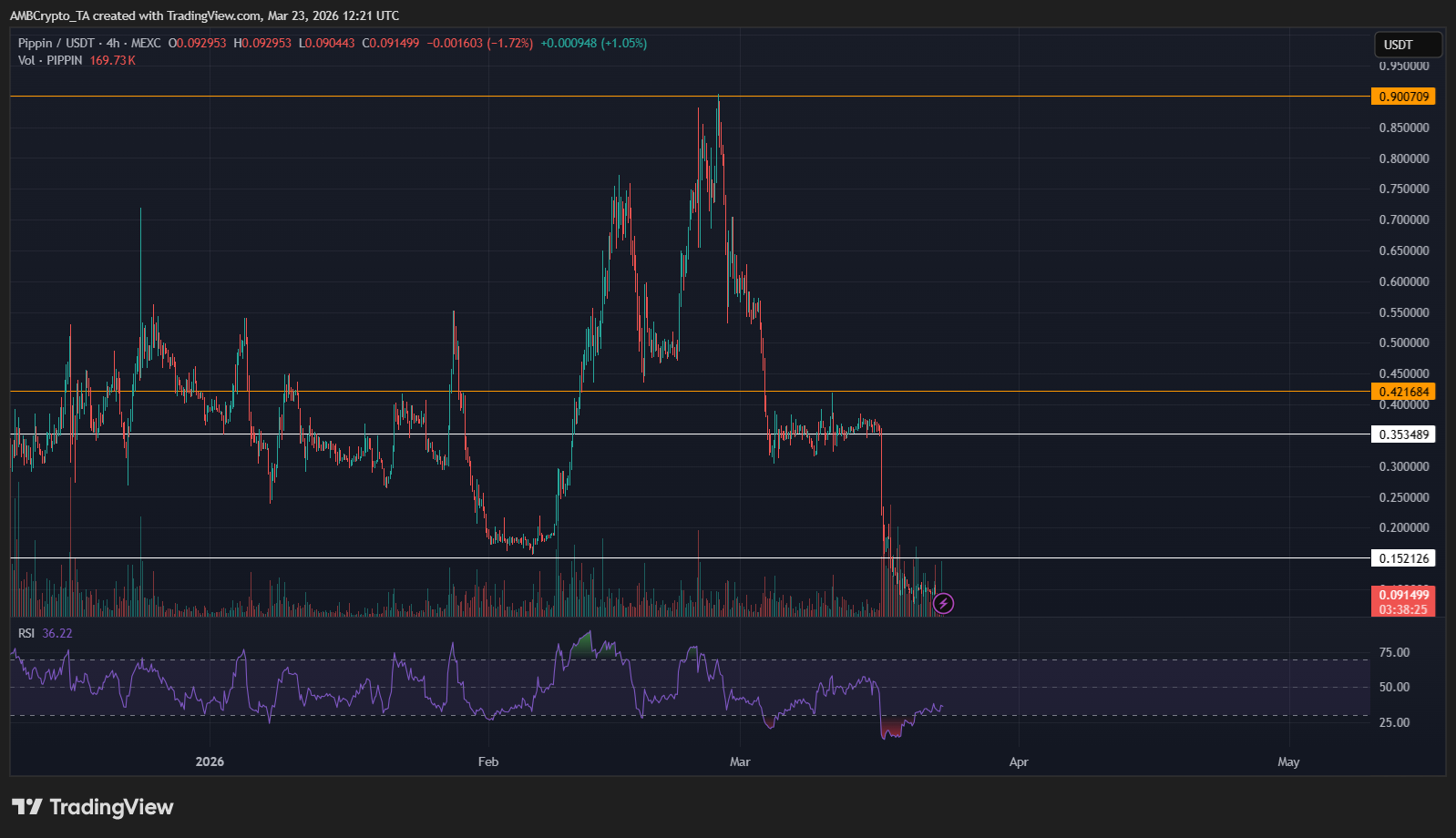 Pippin’s [PIPPIN] price action reflects classic memecoin expansion followed by rapid unwinding, as momentum shifts from hype to distribution.