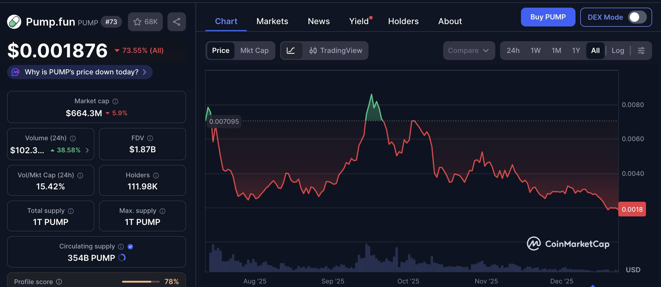 Looking back to July 12 a few months ago, the situation was completely different. Pump.fun's public sale was issued at a uniform price of $0.004 per token, selling out in 12 minutes and raising approximately $600 million, pushing sentiment to a climax.