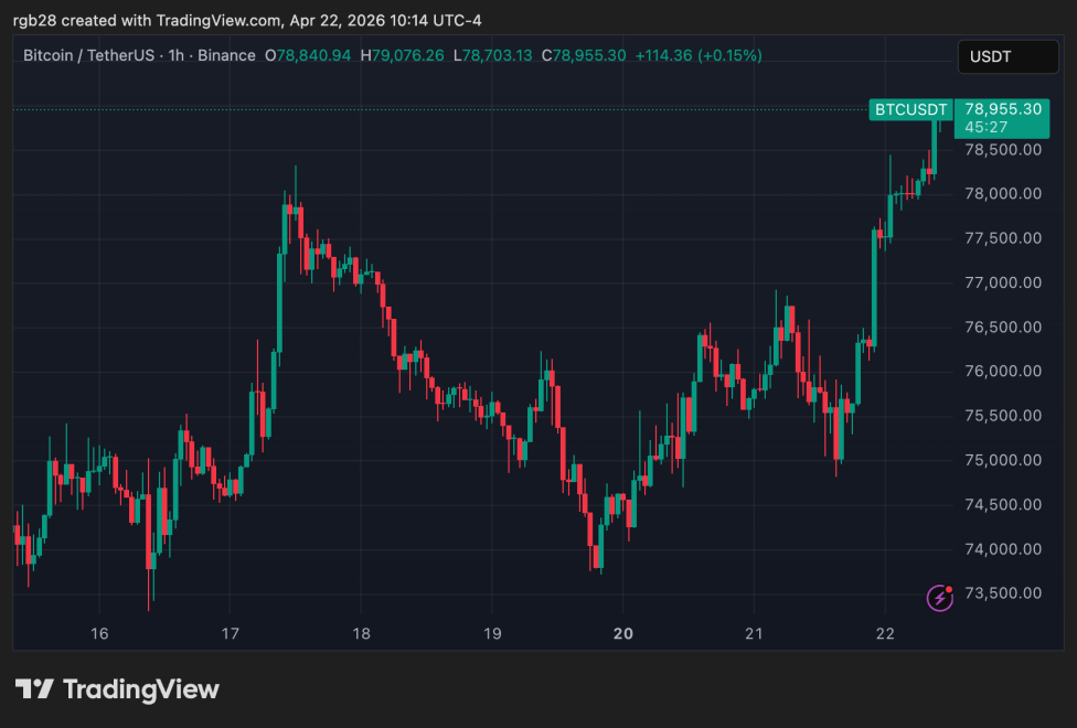 Bitcoin (BTC) trades at $78,955 in the one-week chart. Source: BTCUSDT on TradingView