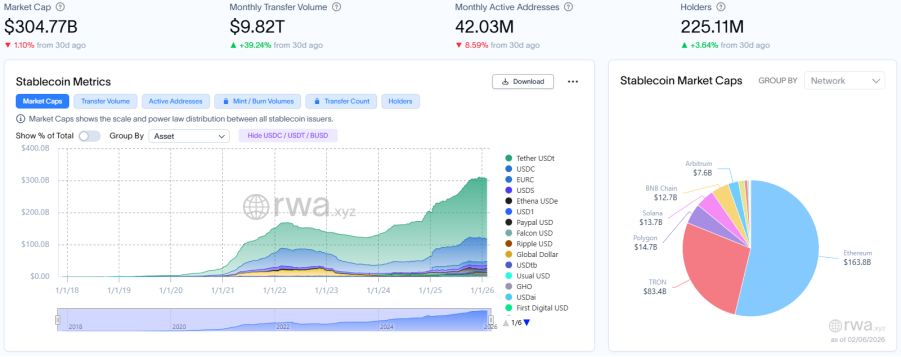 This week, the total on-chain RWA market capitalization continued to grow rapidly, reaching $24.4 billion, while the number of holders surged to 833,900, indicating a shift in growth drivers towards user base expansion. In contrast, the total stablecoin market capitalization slightly decreased, yet monthly transfer volume soared to $9.82 trillion, with the turnover rate climbing to 32.7 times. This "high turnover, low growth" pattern highlights intensified idle circulation of existing funds, showing that capital is not effectively fueling ecosystem expansion.