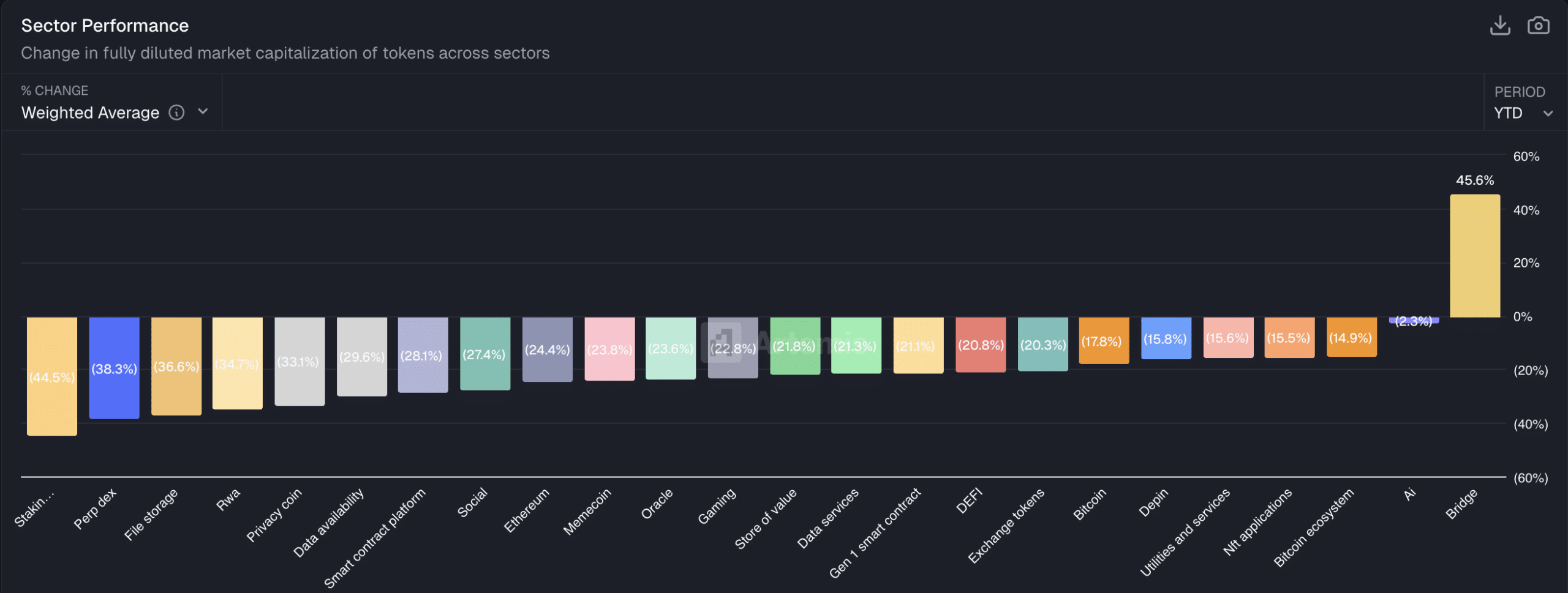 The change is helping its performance. While a majority of sectors have been deep in the red YTD, RWAs have held up fairly decently.