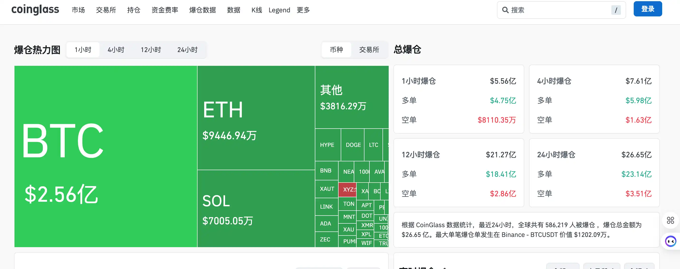 This round of sharp declines triggered massive forced liquidations. According to Coinglass data, over the past 24 hours, the total liquidation amount across the market exceeded $2.66 billion, with long positions accounting for as much as 87% of the liquidations. The single-day liquidation scale ranks 10th in history, second only to the sell-off triggered by the tariff crisis in April 2025.
