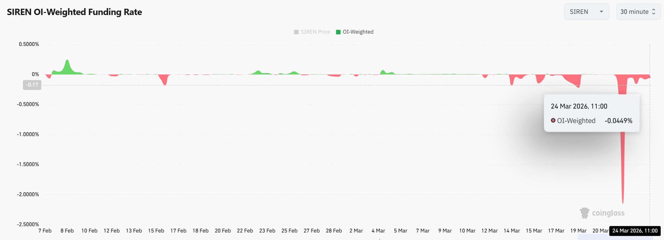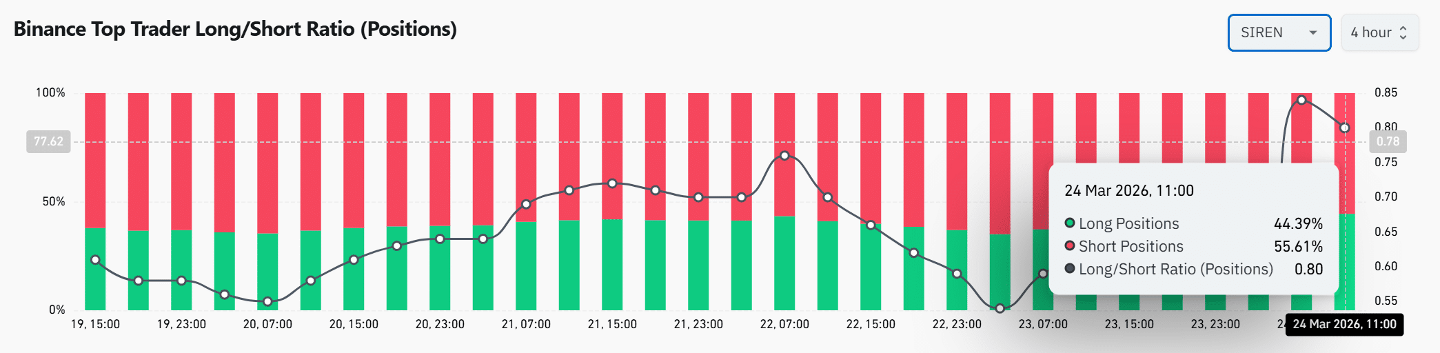 SIREN remains firmly under bearish control as weak demand, declining RSI, and dominant short positioning continue to align with downside pressure.