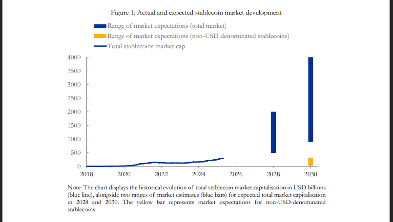 The paper forms part of the ECB’s broader push to keep a close watch on stablecoins, a sector whose total market value has surged to more than $300 billion after more than doubling in the last three years. Forecasts suggest that figure could climb to $2 trillion by 2028.