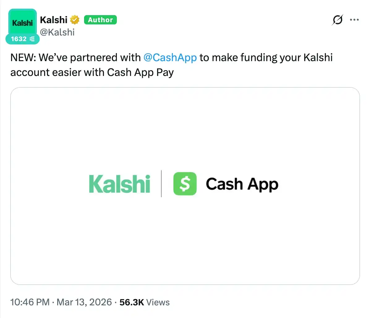 Đây có lẽ là lý do Kalshi tuần trước đã chính thức thông báo hợp tác với ứng dụng thanh toán Cash APP thuộc Block. Nguyên văn lời của Kalshi thậm chí còn nói trực tiếp hơn - "Nhờ Cash App Pay, việc nạp tiền vào tài khoản Kalshi của bạn trở nên dễ dàng hơn" (make funding your Kalshi account easier with Cash App Pay). Trong lời nói, chỉ thiếu việc viết lên mặt là "Hãy nhanh tay dùng Cash App Pay nạp tiền và bắt đầu đặt cược".