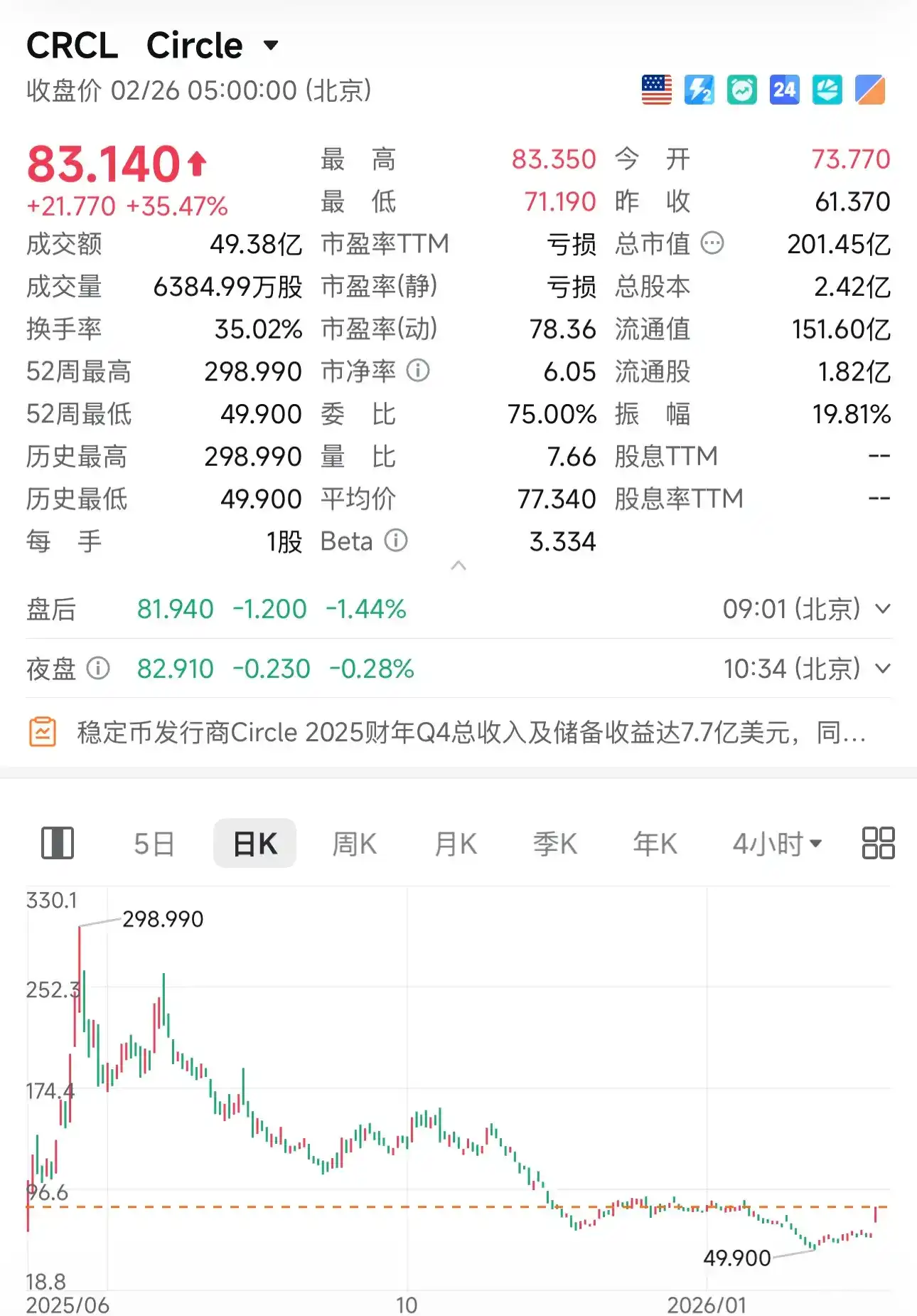 Mizuho Securities upgraded CRCL's rating from underweight to neutral at the end of January, setting a target price of $77. The institution believes that the growth of Polymarket will directly drive the expansion of USDC scale and revenue.