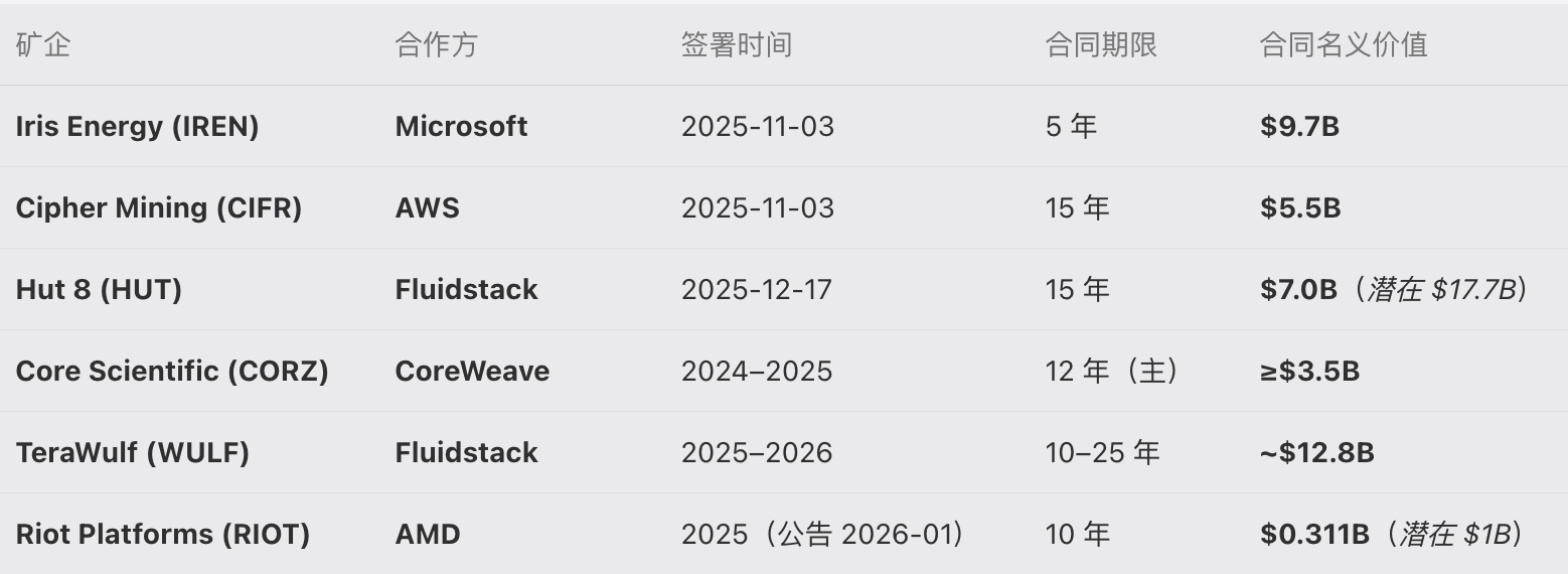 On the surface, the direct incentive for mining companies to transform is the continuous increase in mining difficulty and the compression of profit margins by a sluggish market; but the deeper driving force is the extreme pursuit of the AI narrative by capital markets—and mining companies happen to possess the most easily convertible real-world assets: electricity, land, cooling systems, data centers, and ready-made data infrastructure, which can be exchanged for AI computing power orders worth tens of billions of dollars.