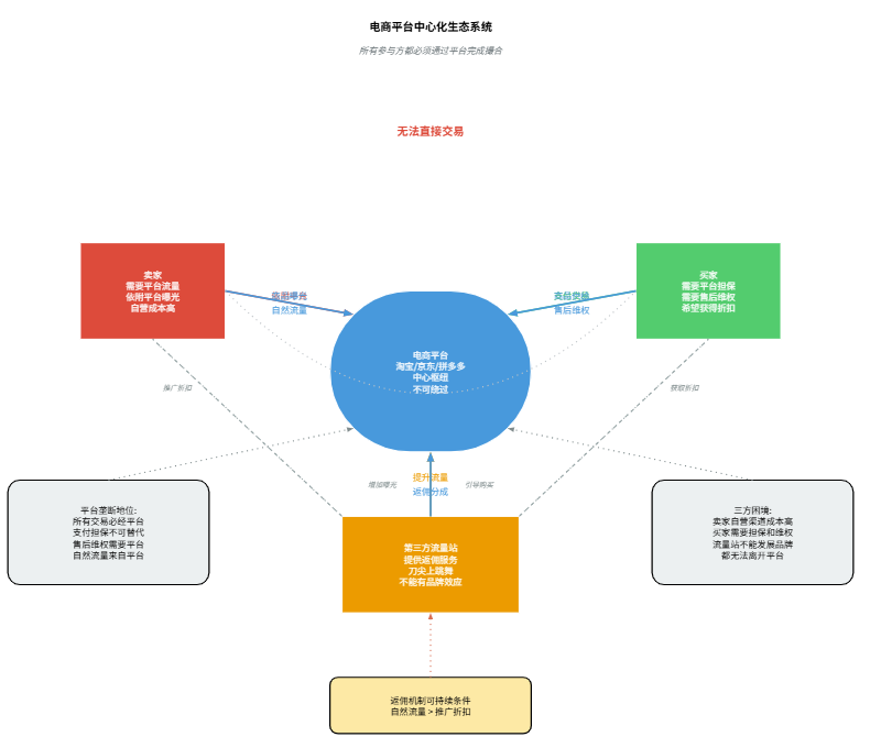 This was the dilemma of early e-commerce traffic stations. They had to maintain good relationships with the platform, sellers, and buyers. Sellers needed third-party traffic stations to enhance competitiveness; buyers wanted discounted prices.