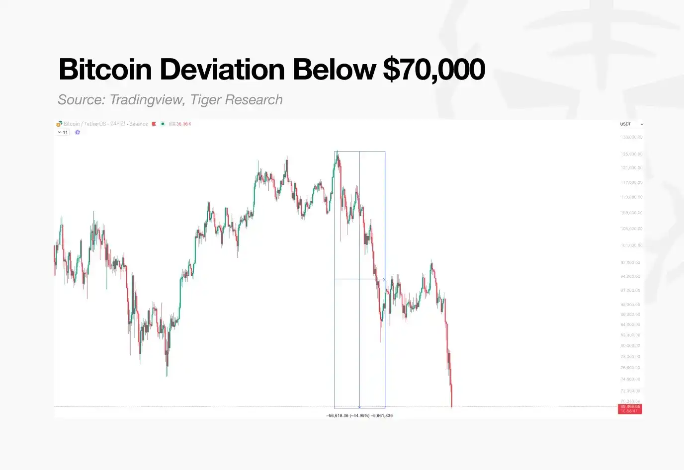 Bitcoin has fallen below $70,000. Among the top 100 cryptocurrencies by market cap, only 7 remain above their 200-day moving average. In contrast, 53 components of the Nasdaq 100 index are still trading above this threshold.