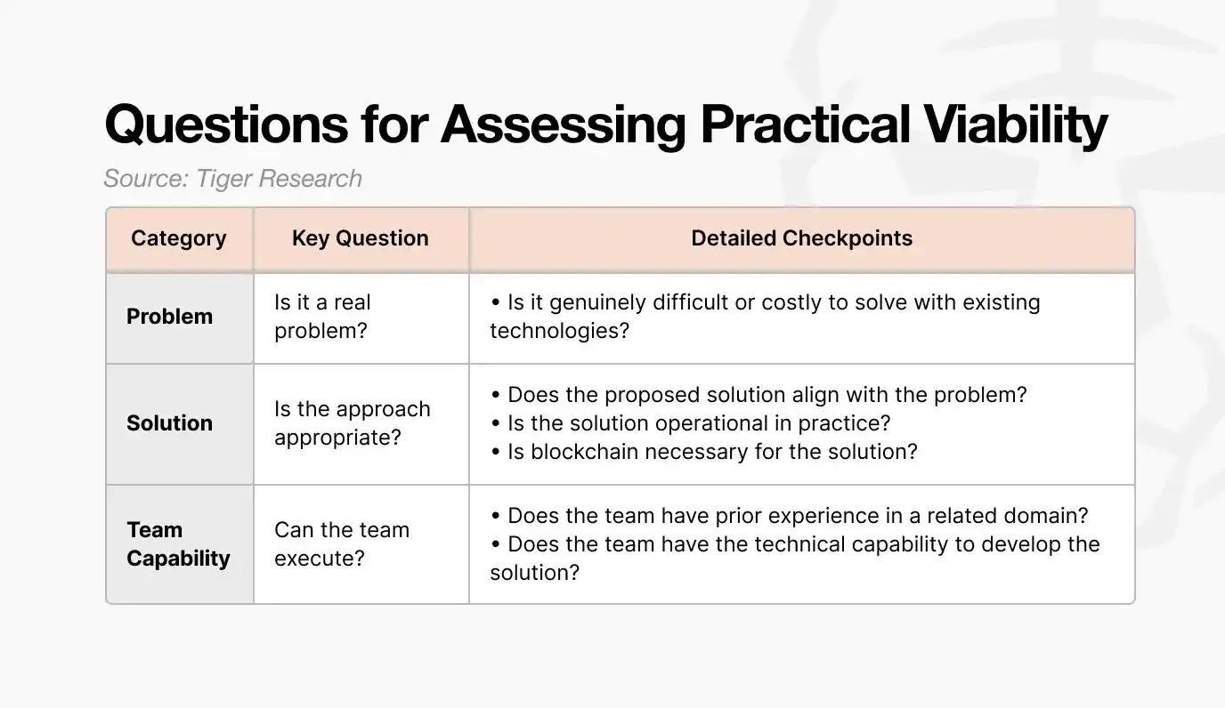 Evaluations of the same project often diverge. Some believe it solves a real problem, while others see it as overhyped. To bridge this interpretation gap, at least three core questions must be asked: