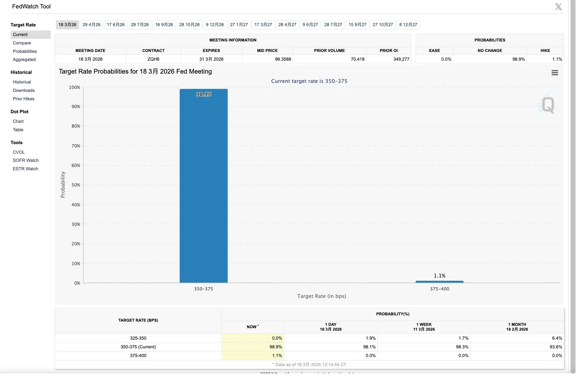 Ahead of the FOMC meeting early Thursday morning, CME data shows the market expects a near 99% probability of maintaining the rate at 3.5%-3.75%, with a 97% probability of holding steady next month. KPMG Chief Economist Diane Swonk warned that the Fed's "dual mandate" has turned into "fighting each other," with the risk of entrenched inflation increasing daily; JPMorgan's David Kelly believes Powell will emphasize the high uncertainty brought by the Middle East conflict, but core economic forecasts won't change much. Former Fed Vice Chair Roger Ferguson bluntly stated that the Fed has deviated from the 2% inflation target for too long, and runaway prices are the biggest threat.
