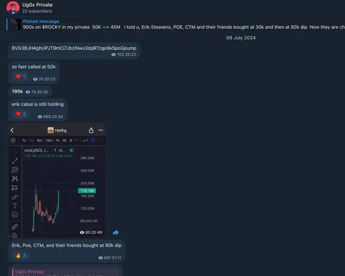 July 8, 2024, was a perfect example with the $ROCKY token. At that time, Erik Steavens, POE, DOGEN, and CTM were all quietly buying between a $10,000 and $80,000 market cap.