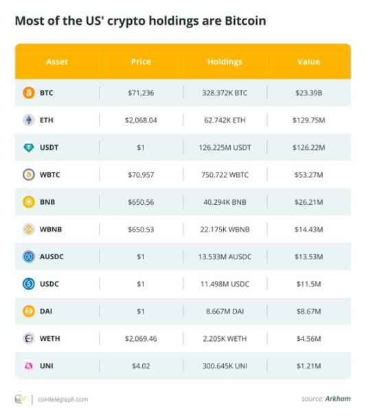 As of press time, the total value of cryptocurrencies held by the U.S. government is approximately $22.39 billion, with Bitcoin alone accounting for about $22 billion. Other major holdings include the stablecoin USDC, Ether, Wrapped Bitcoin (WBTC), and BNB.