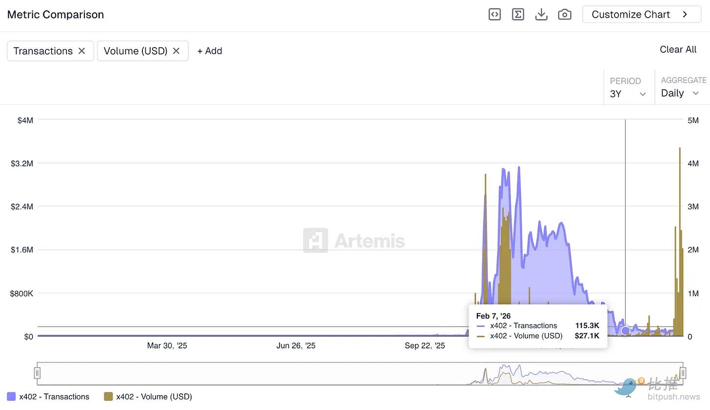 Despite the ecosystem around the x402 protocol being valued at roughly $7 billion, on-chain data shows it processed only about $28,000 per day last week, most of it from testing rather than real commercial transactions. This number is completely off the scale compared to what Visa processes daily.