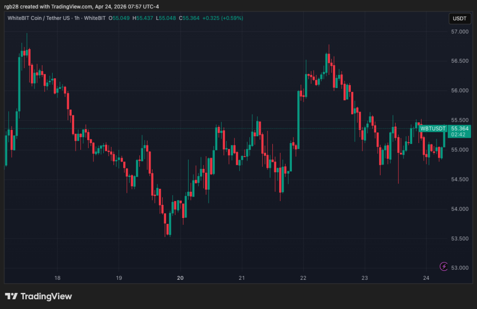 As of this writing, WhiteBIT’s token, WBT, is trading at $55.4, a 1.1% increase in the monthly timeframe.