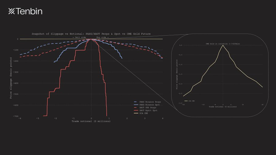 PAXG / XAUT Perps & Spot vs CME Deliverable Gold Futures: Trade Size vs Slippage