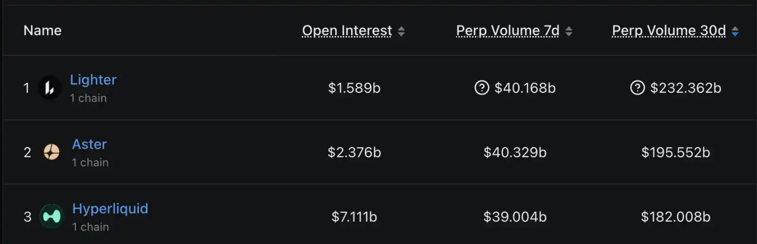 · Lighter: Trading volume $232.3 billion, temporarily leading,约占 26.6%.