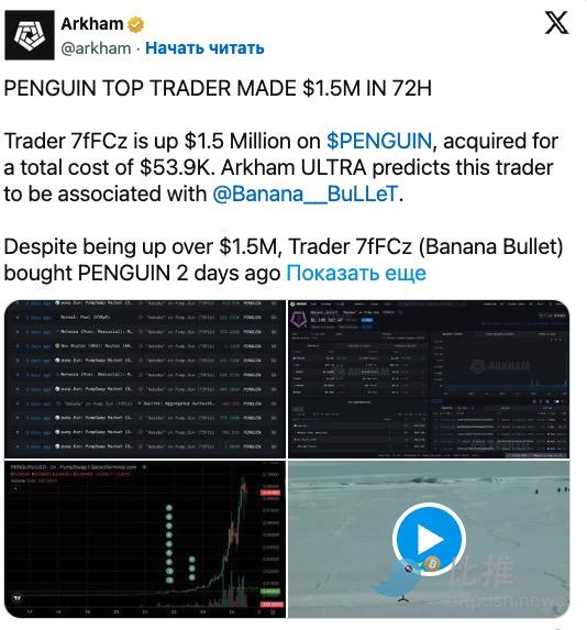 According to Arkham monitoring, one trader accurately潜伏 (lurked), invested $53,900, and reaped a profit of $1.5 million within 72 hours, achieving financial freedom.