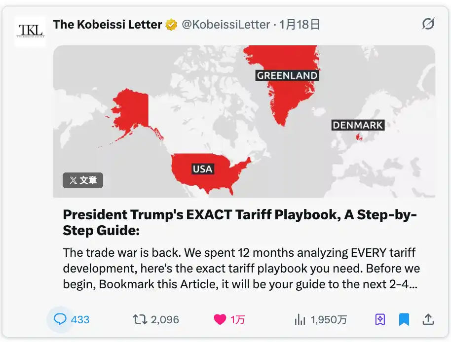 What he did in this article is also very direct: he拆解 (deconstructed) Trump's tariff playbook into a repeatable trading framework, titled "Trump's Tariff Playbook: An Operational Guide."