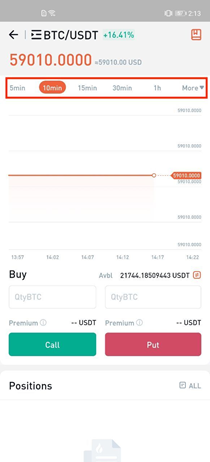 U kunt call of put kopen op grond van de marktsituatie. Voer het bedrag van de optieovereenkomst gerelateerde valuta (eenheid: BTC of andere valuta's). Het systeem berekent de kosten die moeten worden betaald voor de aankoop van de optieovereenkomst. Klik op Call of Put om de optieovereenkomst te kopen.