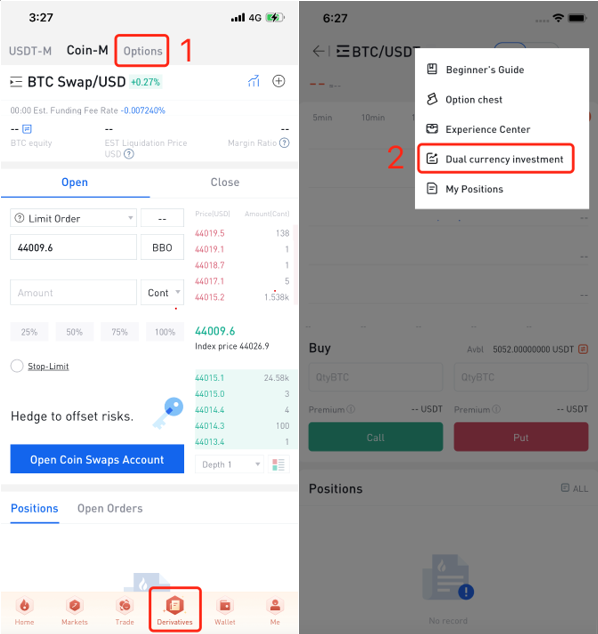 Als het product wordt "uitgeoefend", ontvangt de gebruiker het rendement in BTC (of ETH), met retour = Aankoopbedrag / Uitoefenprijs; als het product "niet uitgeoefend" is, ontvangt de gebruiker de teruggave in USDT, met teruggave = Aankoopbedrag.