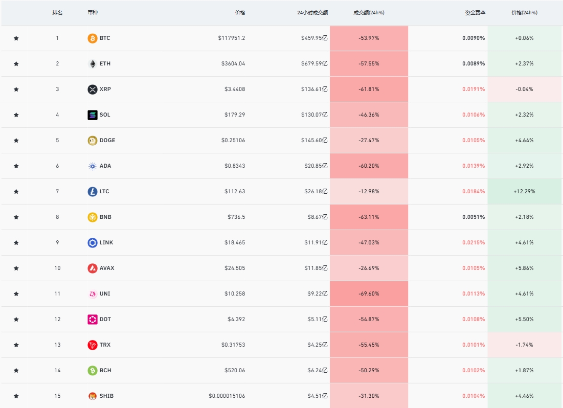 加密市场:比特币现报117951美元。ETH价格为3604美元,HTX目前价格0.000001881美元。