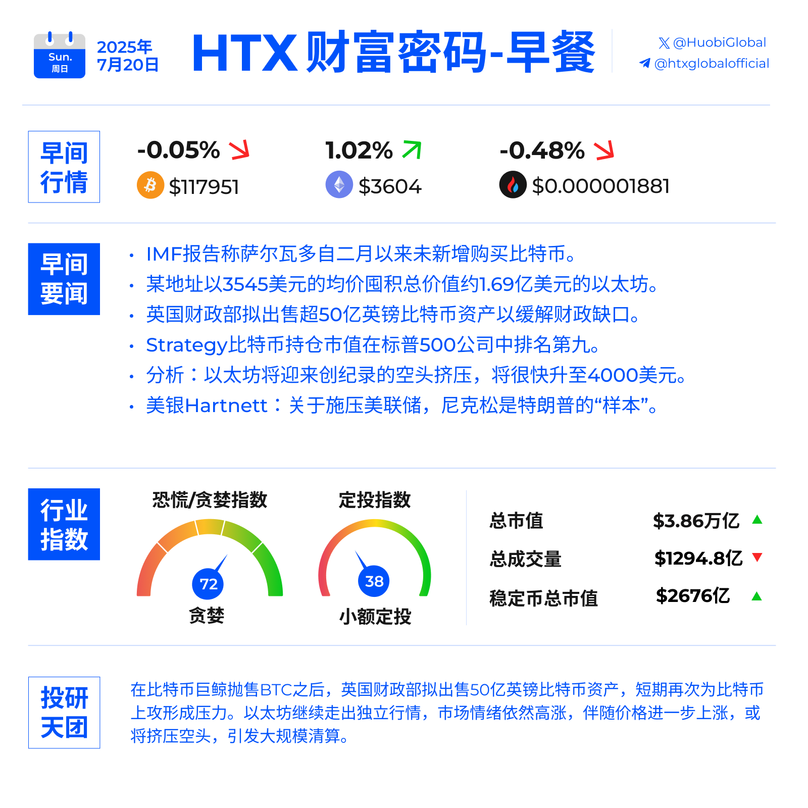 今日市场动态亮点:英国财政部拟出售超50亿英镑比特币资产以缓解财政缺口。
