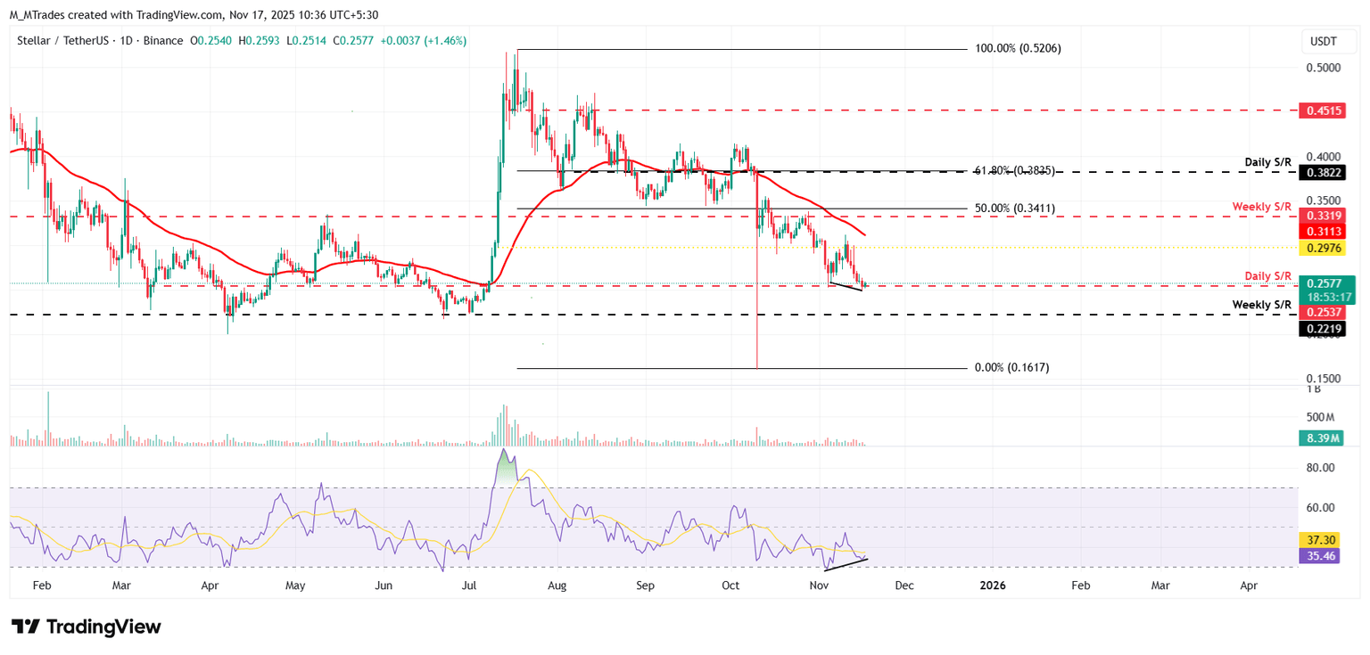 截至周一发稿时,恒星币 (XLM) 价格在 0.258 美元附近徘徊,并在关键价位附近获得支撑,暗示着复苏的早期迹象。XLM 的链上交易活跃度,在巨鲸的加持和买方压力的增强的推动下,预示着市场动能可能出现转变。与此同时,相对强弱指数 (RSI) 的看涨背离也增加了短期复苏的可能性,交易员们正在等待上涨趋势的确认信号。